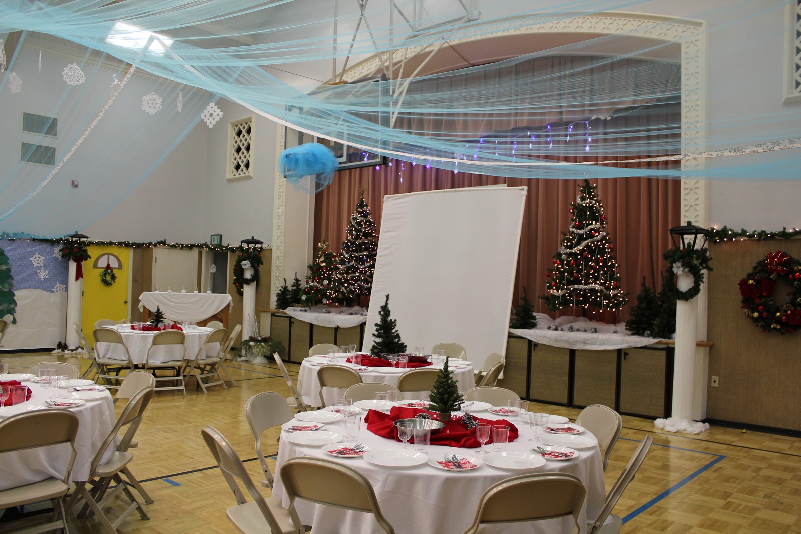 This was the beginning of our setting things up. We set up for 80 and then in the back of the room we set up for 80 again to do the ornament exchange.